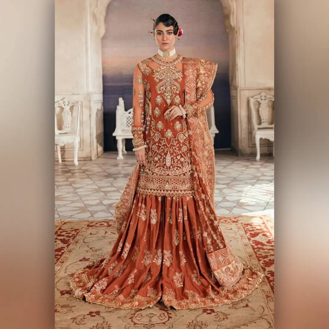 Tags: Bridal, Bridal Dress, chiffon, Designs Now, Garara, Ladies Fashion, Luxury Dress, net, Nikah Dress, RUST BRIDE, Shalwar kameez